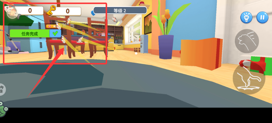 1、基礎(chǔ)操作教學(xué)通過簡單直觀的指引,可快速掌握貓咪移動(dòng)方式,包括精準(zhǔn)跳躍障礙、靈活攀爬家具等基本動(dòng)作。