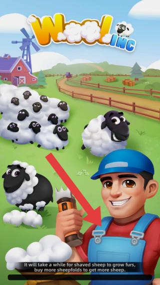 1、呈現(xiàn)了農(nóng)場場景,有羊、人物、風(fēng)車、谷倉等元素,文字說明“剪過毛的羊需要一段時間才能長出毛,購買更多可處置物品來獲得更多羊”,屬于模擬經(jīng)營養(yǎng)羊剪羊毛的內(nèi)容。