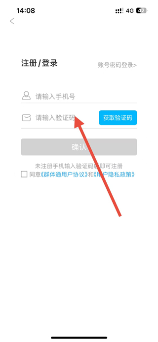 3、進入注冊登錄頁面后,輸入手機號碼,獲取驗證碼并,勾選相關(guān)協(xié)議后,點擊確認按鈕。