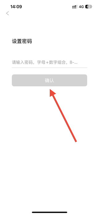 4、在設(shè)置密碼頁面,設(shè)置密碼,點擊確認按鈕即可完成賬號注冊操作。
