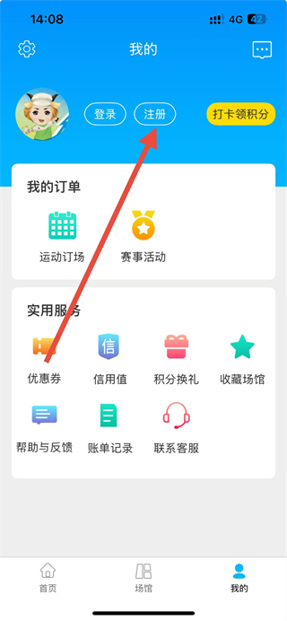 2、在個人頁面上方,點擊注冊選項,進入注冊頁面。