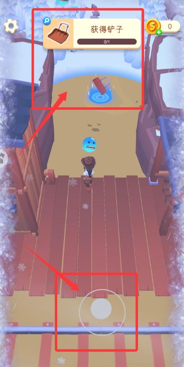2、在雪域場景,操控角色移動到指定區(qū)域,可獲取鏟子工具推進任務(wù)。