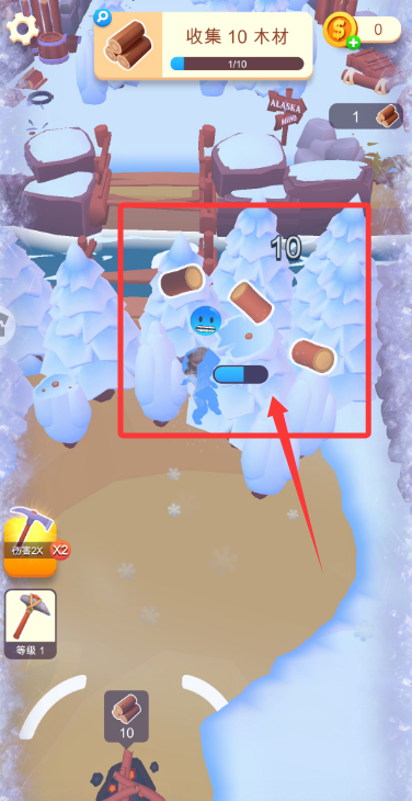3、依據(jù)提示到達樹木區(qū)域,用工具砍伐收集木材資源,達成收集目標。