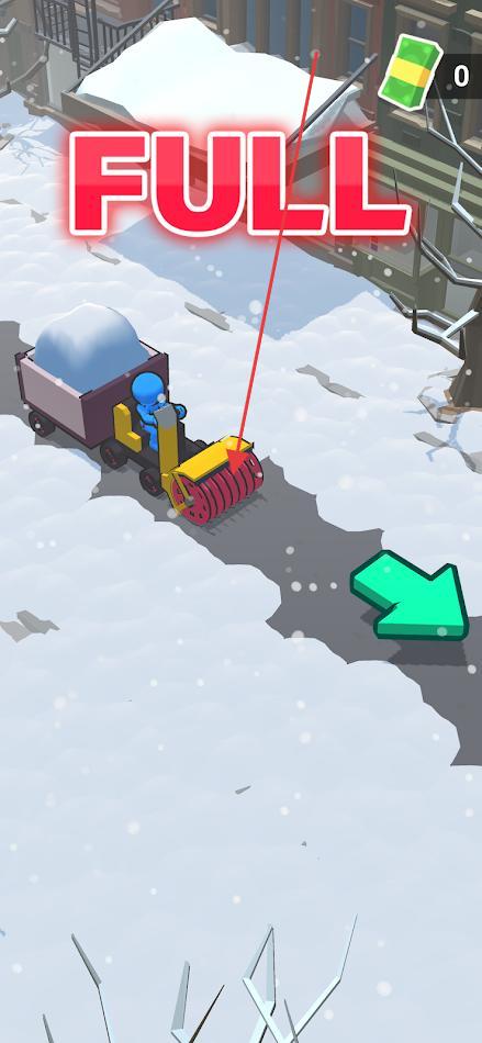 2、滿“FULL”就倒!看到紅大字,跟綠箭頭,2秒卸雪,空車再清,效率+30%,超賺,早解鎖新車型。