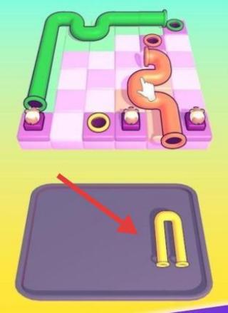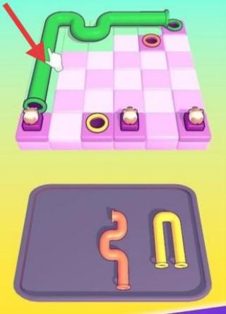 1、管道替換:從下方托盤拖動(dòng)橙色“S”形管道,放置上方棋盤原橙色管道位置。