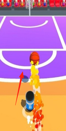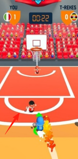 2、操作機(jī)制控制角色運(yùn)球、突破,躲避防守(圖1紅隊(duì)防守),或借助道具(圖2油桶),調(diào)整投籃軌跡,嘗試得分。