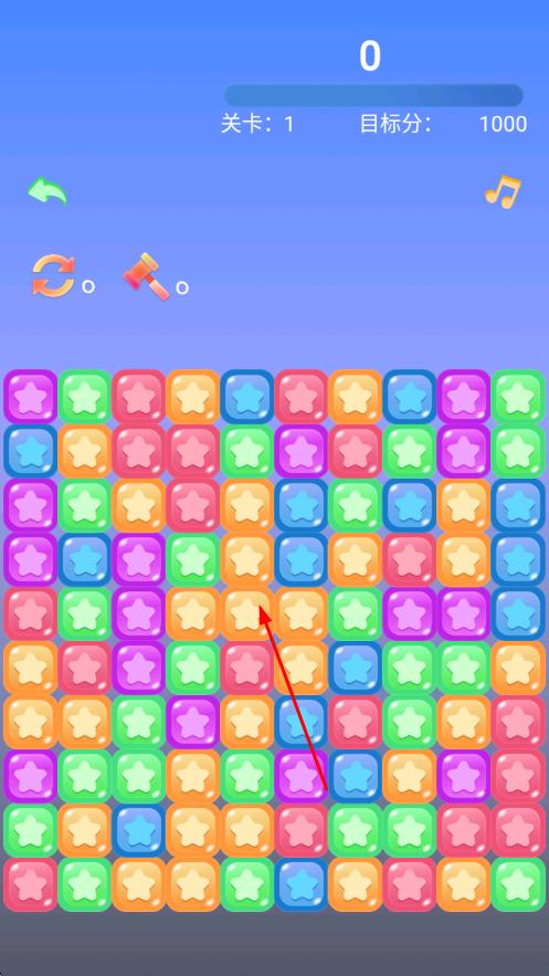 1、進(jìn)入游戲后仔細(xì)觀察關(guān)卡方塊布局,精準(zhǔn)點(diǎn)擊三個(gè)及以上相同圖案的方塊完成首次消除操作。