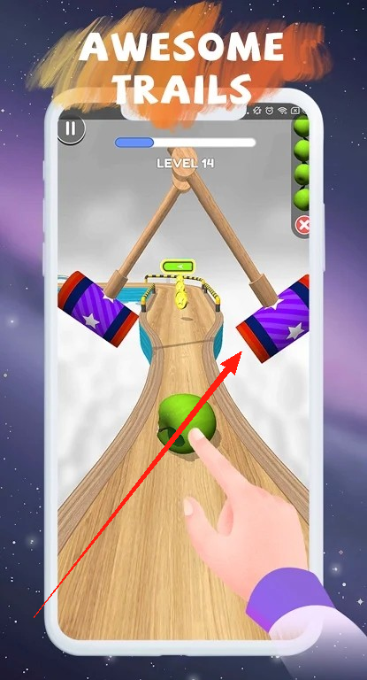 2、資源管理網(wǎng)絡(luò):跑酷過(guò)程中通過(guò)收集金幣與完成目標(biāo)獲取資源,合理分配資源用于購(gòu)買(mǎi)新皮膚與升級(jí)小球能力,特殊道具可臨時(shí)提升跑酷效率或提供關(guān)鍵提示。