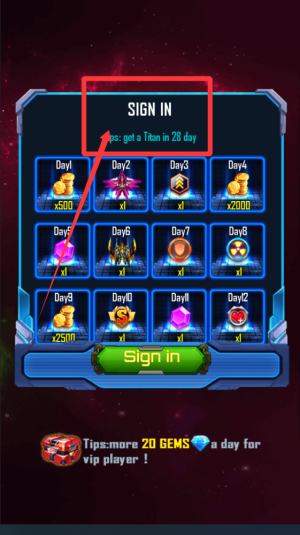 1、每日上線第一時(shí)間要查看您的簽到獎(jiǎng)勵(lì)哦,得到大量資源,方便后續(xù)游戲體驗(yàn)哦。