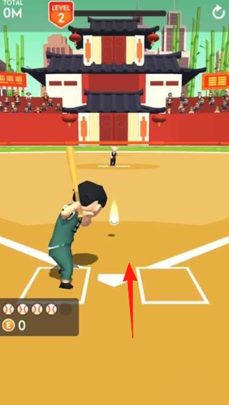 1、擊球操作在中式場地(古建筑、竹林),控制角色揮棒,擊打飛來的球,需精準預判,完成“LEVEL2”挑戰(zhàn)。