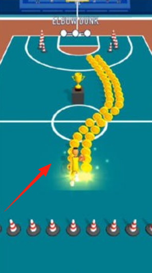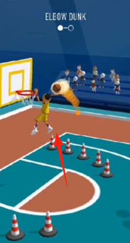 2、扣籃挑戰(zhàn)在“ELBOWDUNK(手肘扣籃)”關(guān)卡,控制角色起跳,用特殊道具(巨型護(hù)肘),越過障礙,完成扣籃。