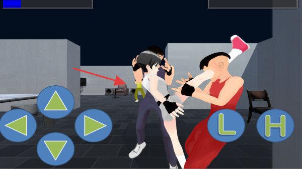 1、操作機制用虛擬按鍵(方向鍵+L輕擊、H重擊),控制角色(白衣短發(fā)),組合出招,對抗敵人。