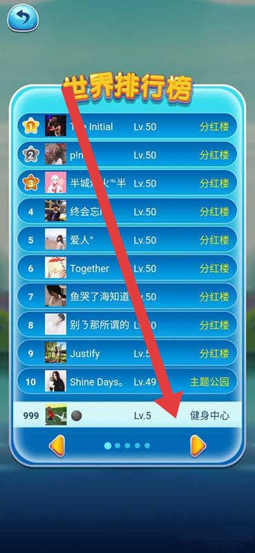 3、查看“世界排行榜”(紅箭頭指向),了解玩家等級(jí)與建筑,參考玩法,提升自身排名。