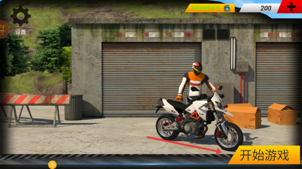 1、點(diǎn)擊【開(kāi)始游戲】,選擇摩托與角色,開(kāi)啟山地競(jìng)速挑戰(zhàn)之旅。