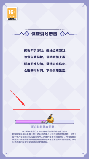 3、等待加載完成,閱讀健康游戲忠告內(nèi)容。