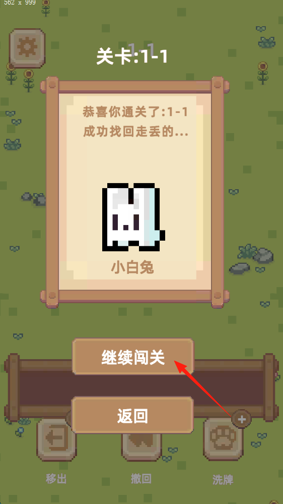 2、完成關(guān)卡后,點(diǎn)擊繼續(xù)闖關(guān),進(jìn)入新關(guān)卡,挑戰(zhàn)更復(fù)雜方塊消除。