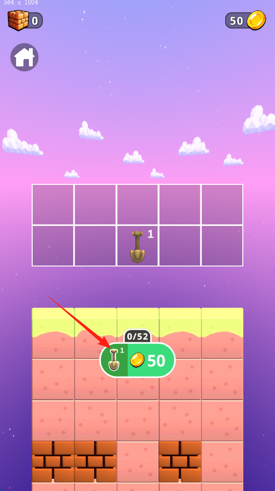 1、點(diǎn)擊下方帶鏟子和金幣的格子,消耗金幣,在上方方紫色區(qū)域放置鏟子。