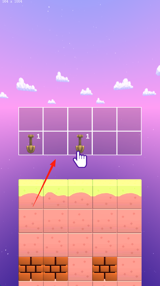 2、點(diǎn)擊紫色區(qū)域已放置的鏟子,讓其掉落下方,開始挖掘?qū)?yīng)格子。