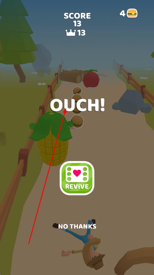 3、當(dāng)遇到大型蔬菜障礙時(shí),長(zhǎng)按屏幕觸發(fā)角色跳躍或滑行動(dòng)作(如跨越玉米、鉆過蘿卜陷阱),延續(xù)奔跑并積累高分。