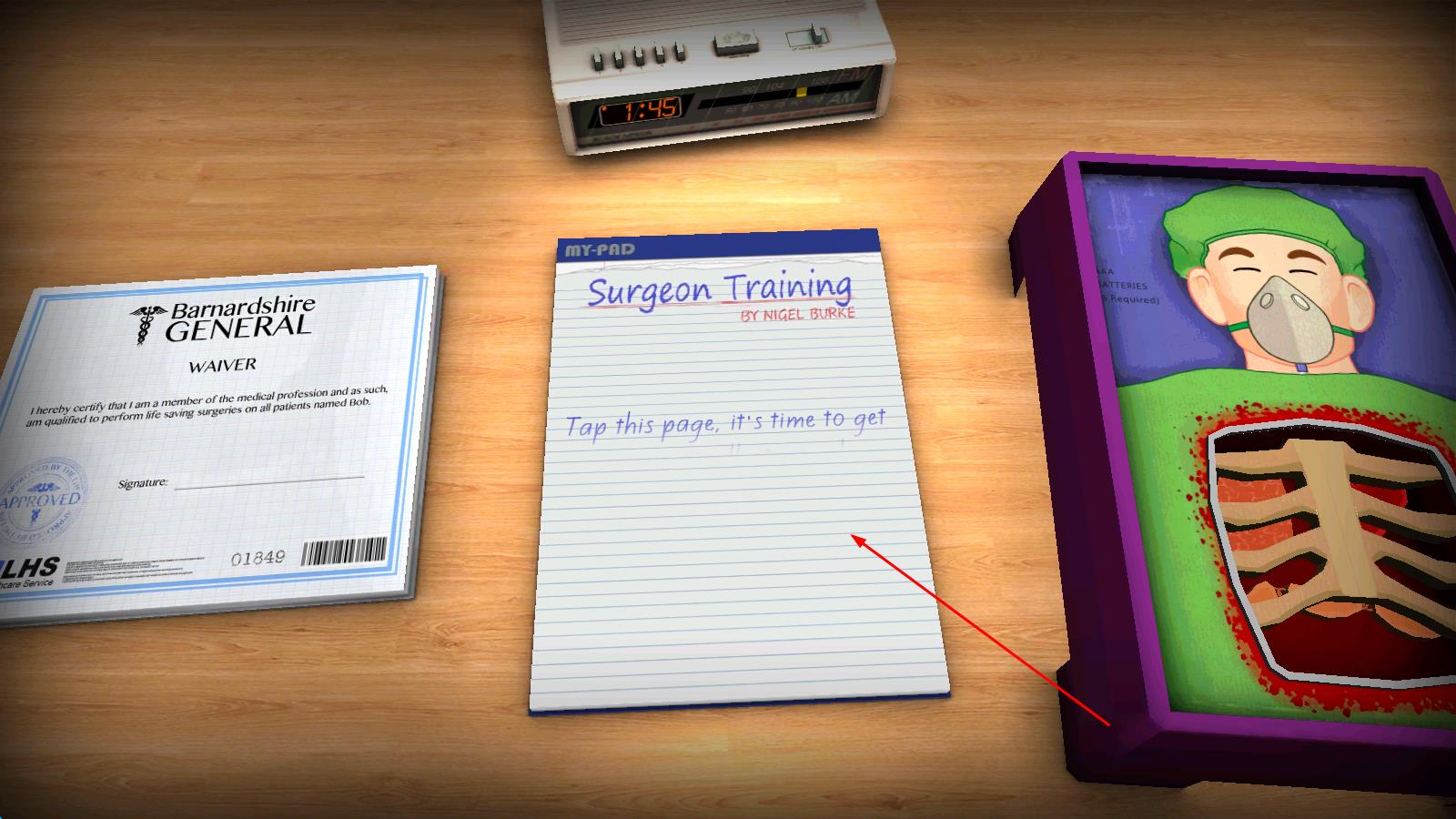 1、進(jìn)入游戲,置身外科醫(yī)院場景,作為專業(yè)醫(yī)生接收病患,根據(jù)系統(tǒng)提示選取正確手術(shù)工具,準(zhǔn)備開始手術(shù)。
