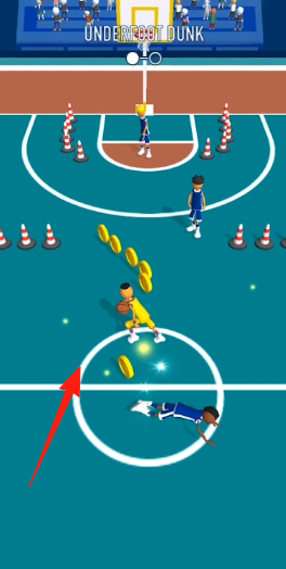 2、對(duì)抗機(jī)制突破藍(lán)衣防守,利用場(chǎng)地(三分線、籃下),規(guī)劃扣籃路線,積累得分,解鎖新關(guān)卡。