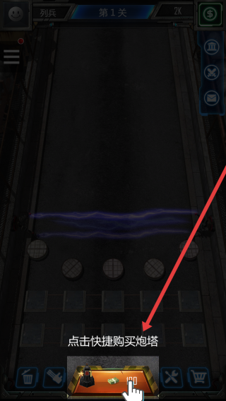 1、在第1關(guān),點擊快捷購買按鈕,消耗金幣(110),獲取新炮塔,為防御敵人做準(zhǔn)備。