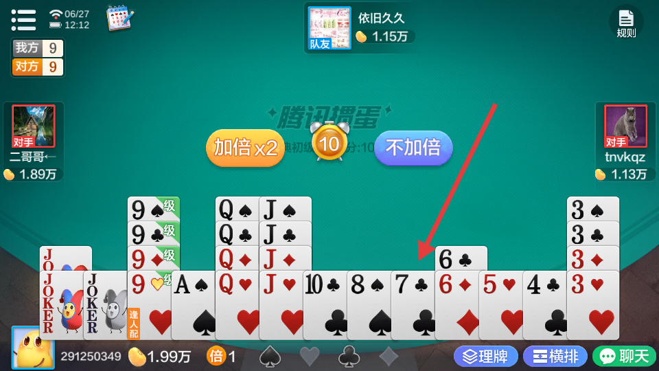 3、組隊(duì)?wèi)?zhàn)要跟隊(duì)友打暗號(hào),用腳趾頭想都知道對(duì)家藏了四個(gè)王。