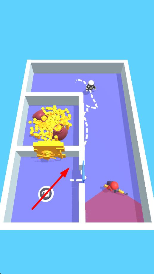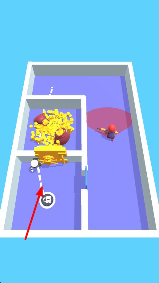 1、進(jìn)入局內(nèi)后滑動(dòng)屏幕操控火柴人移動(dòng),長按屏幕進(jìn)入潛行姿態(tài),利用場(chǎng)景陰影躲避初始巡邏兵的視線。