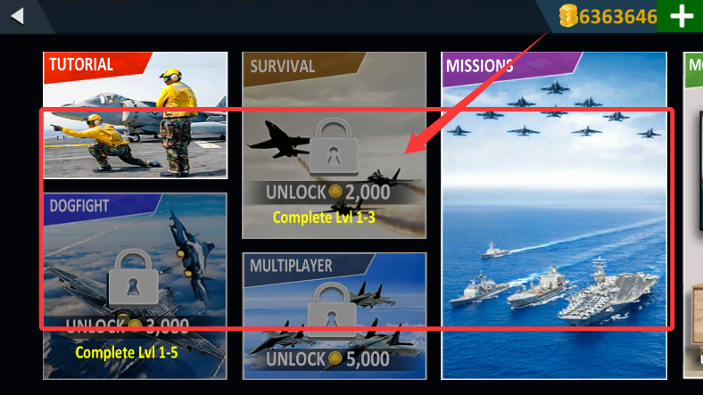 1、每日登錄可領(lǐng)取豐厚金幣,用于解鎖新戰(zhàn)機或升級裝備配件。