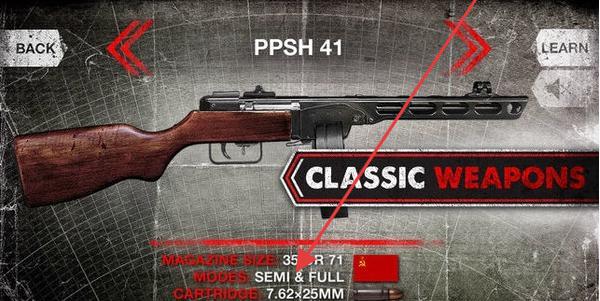 3、探索經(jīng)典槍械:在“CLASSIC WEAPONS”板塊,查看不同經(jīng)典槍械(如PPSh41)的信息,彈匣容量、射擊模式。
