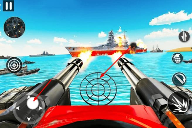 3、在對戰(zhàn)關(guān)卡,當(dāng)敵方目標(biāo)出現(xiàn)時,點擊射擊按鈕發(fā)動攻擊,朝著肅清海域威脅、完成反恐任務(wù)的方向推進(jìn),同時留意彈藥儲量與艦艇掩護(hù)。