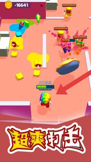 2、畫面中顯示彩色角色在場景中戰(zhàn)斗,有金幣數(shù)量顯示,還有其他顏色各異的角色。