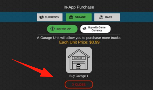 2、若彈出內(nèi)購(gòu)窗口且無(wú)意購(gòu)買車庫(kù),點(diǎn)擊【箭頭】所指“XCLOSE”,關(guān)閉該彈窗。