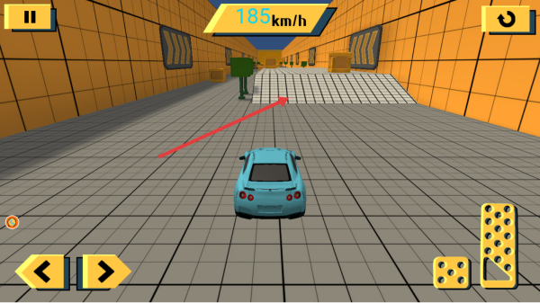 3、點(diǎn)首界面“開始游戲”,選解鎖車輛,進(jìn)入賽道按箭頭指引用按鍵操控賽車前進(jìn)。