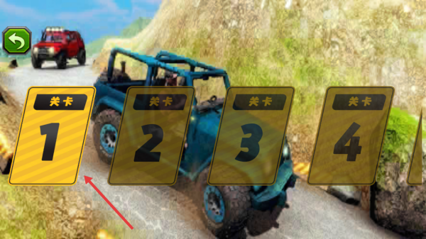 2、進(jìn)入界面后可選擇關(guān)卡,點(diǎn)擊心儀選項(xiàng)確定,隨后挑選合適的越野車輛,完成準(zhǔn)備后開啟越野挑戰(zhàn)。