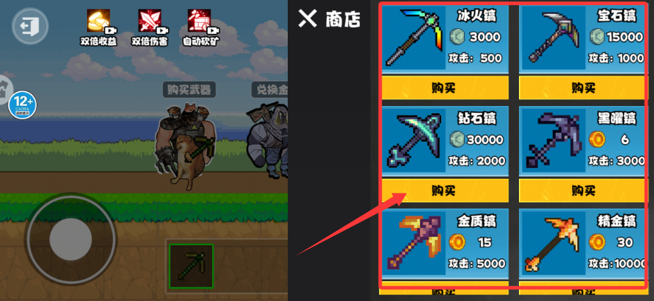 3、獲得的資源可在裝備商店兌換更強(qiáng)力的開(kāi)采工具,提升挖掘的效率。