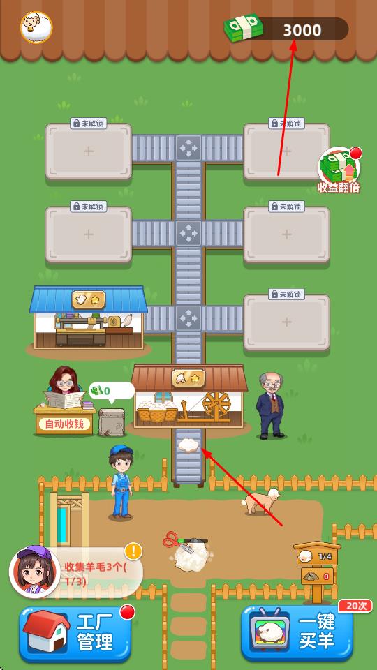 3、收益循環(huán)拓展:將收獲的羊毛兌換成收益,一部分用于購買飼料與工具,一部分投入到擴(kuò)大養(yǎng)殖規(guī)模,解鎖新的羊品種,農(nóng)場設(shè)施逐步完善,養(yǎng)殖能力不斷提升良性發(fā)展循環(huán)。