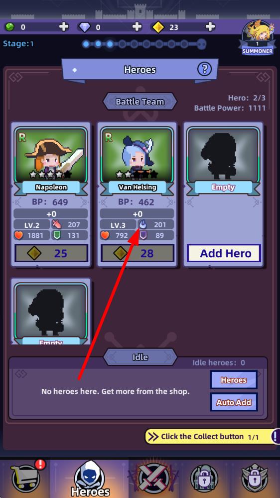 2、掛機(jī)場(chǎng)景中派遣陣容自動(dòng)戰(zhàn)斗,收集金幣與靈魂碎片,使用資源提升角色等級(jí)與技能等級(jí)。
