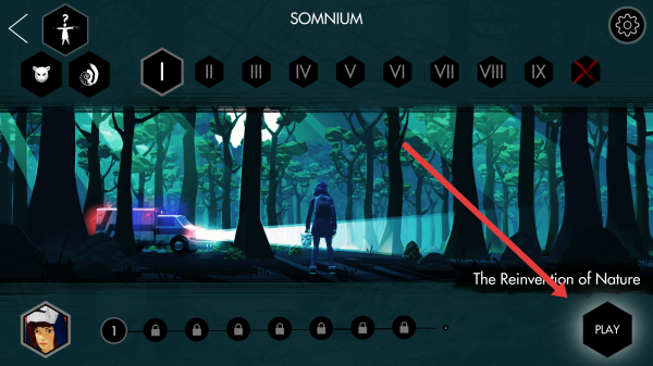 2、在章節(jié)選擇頁,選【The-Reinvention-of-Nature】章節(jié),點擊【PLAY】,進入森林場景,推進故事。