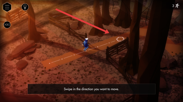 3、探索時,按提示滑動屏幕,控制角色向箭頭指向的白色標記移動,解鎖區(qū)域,收集線索。