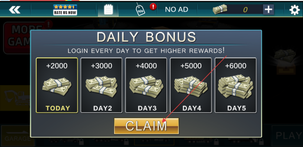 3、每日登錄后,到【DAILY BONUS】界面,點【CLAIM】領當日金幣獎勵,積累資源助力游戲進程。