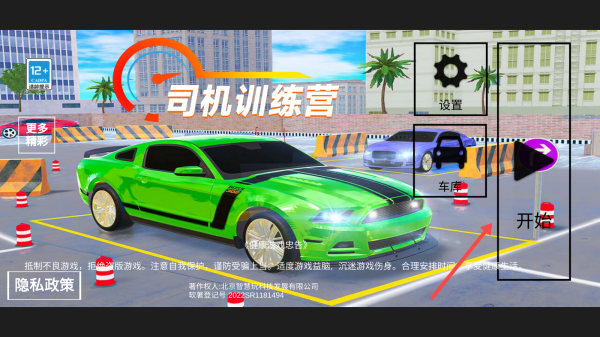 1、點(diǎn)擊【開始】,進(jìn)入《司機(jī)訓(xùn)練營》模式選擇,選【停車場】,開啟停車訓(xùn)練關(guān)卡。
