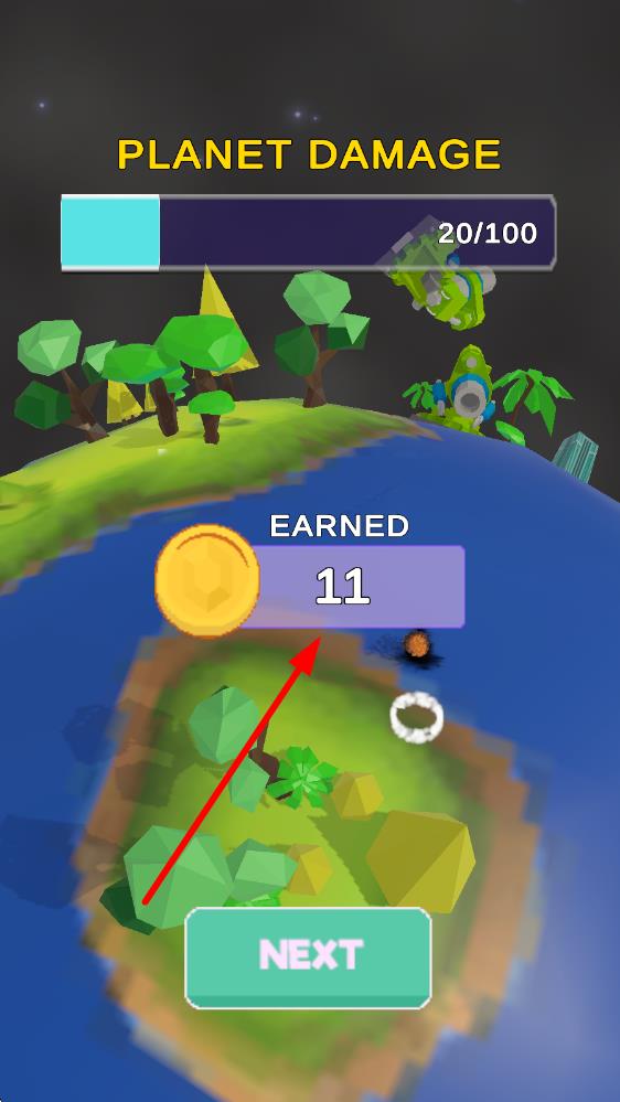 3、通關(guān)時,突破最后一道行星防御,讓小行星成功撞擊地球,造成最大傷害,根據(jù)破壞程度獲得高分,解鎖更強天體。