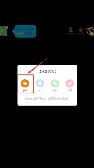 1、點擊小米圖標(biāo),使用小米賬號登錄游戲。