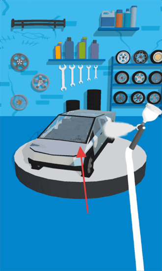 3、在具體清洗環(huán)節(jié),如第三張圖,操控噴水設(shè)備清洗車輛,仔細(xì)清潔車身污漬,完成任務(wù)獲取獎(jiǎng)勵(lì),解鎖新工具和車輛類型,提升店鋪等級(jí)。