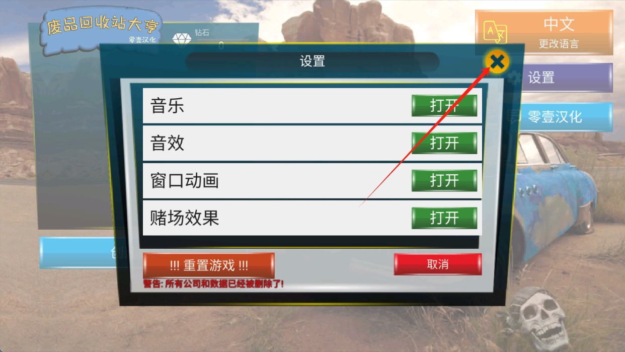3、點擊關閉,收集特定組合的成就獎勵解鎖限定劇情,如"解鎖所有基礎場地""累計修復1000輛汽車"。