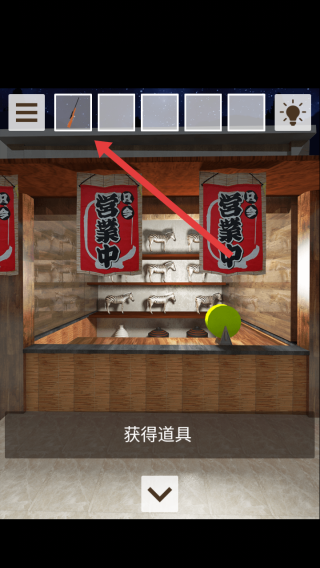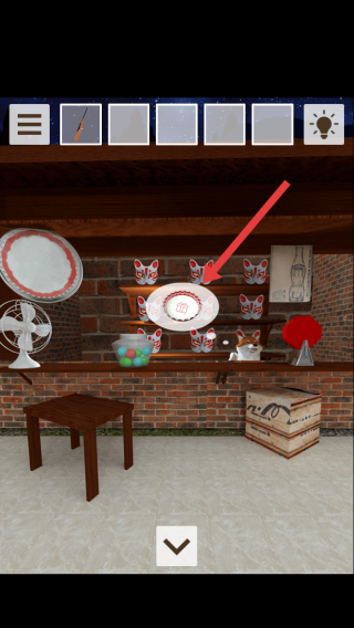 3、點擊架上帶禮物圖案的圓形物品,收集該道具,同時關(guān)注旁側(cè)貓臉面具、復(fù)古風(fēng)扇等元素,梳理關(guān)聯(lián)邏輯。