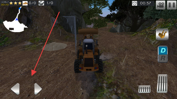 3、點(diǎn)擊右側(cè)油門,驅(qū)動裝載機(jī)在工地行駛作業(yè)。