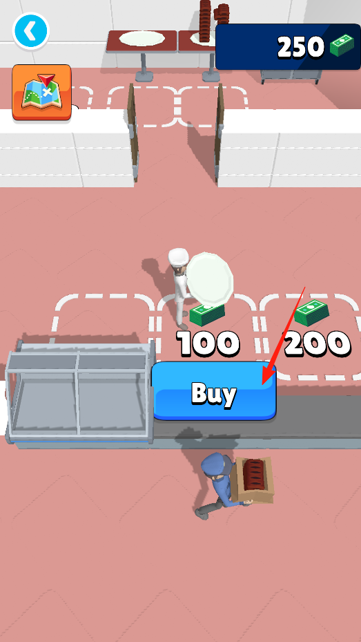 3、在食材采購點,點擊“Buy”按鈕,消耗貨幣(如200)購入食材,借交易機制,補充餐廳庫存,為制作菜品提供原料,體驗經(jīng)營中資源置換的策略玩法,保障餐廳運轉(zhuǎn)。