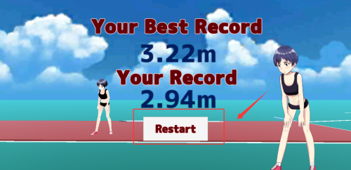 3、若未達預(yù)期成績可點擊restart重新嘗試,系統(tǒng)保留最佳投擲記錄。